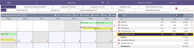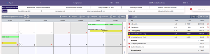 I löneberäkningen presenteras följande:
