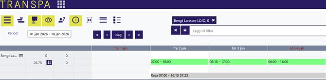För att Transpa ska kunna beräkna traktamente automatiskt behöver ni rapportera en aktivitet av typen Resa.