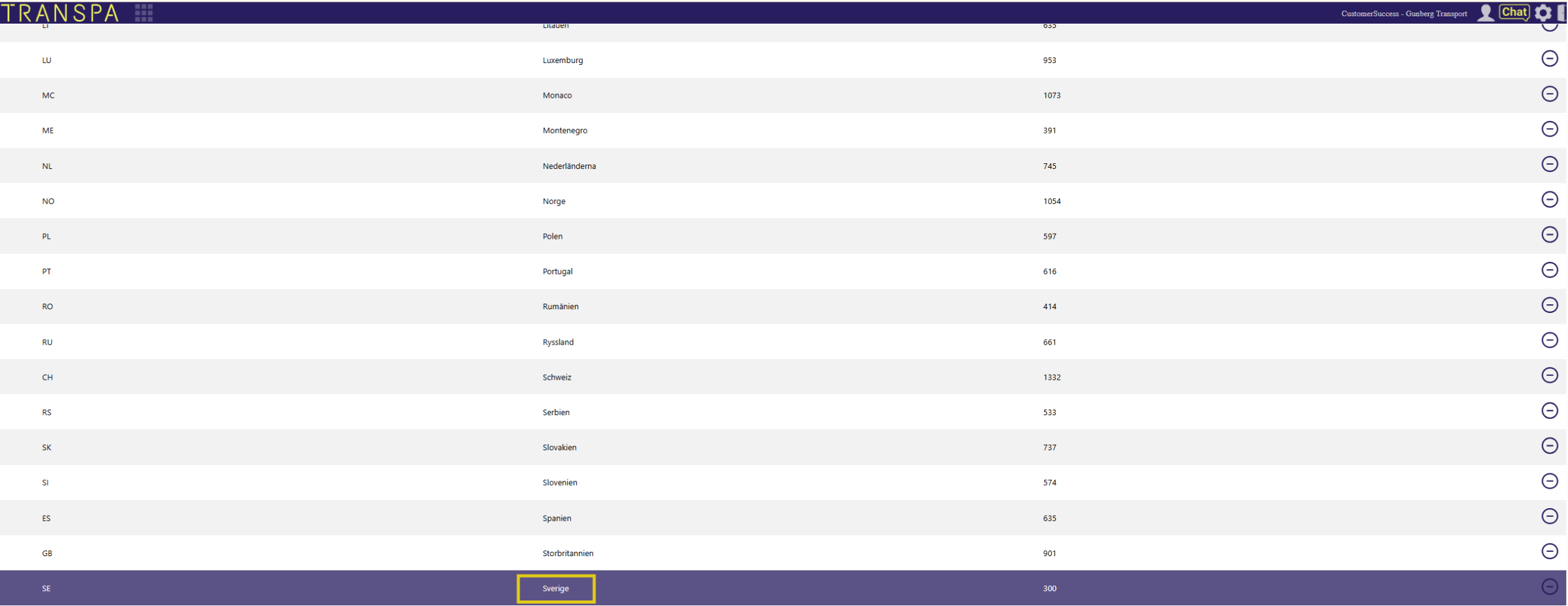 Klicka på pennan för det land du vill titta på (t.ex. Sverige).