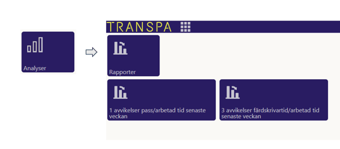 Ta gärna hjälp av vårt analysverktyg. Här finns en rapport där ni kan se avvikelser mellan arbetad tid och färdskrivartid.
